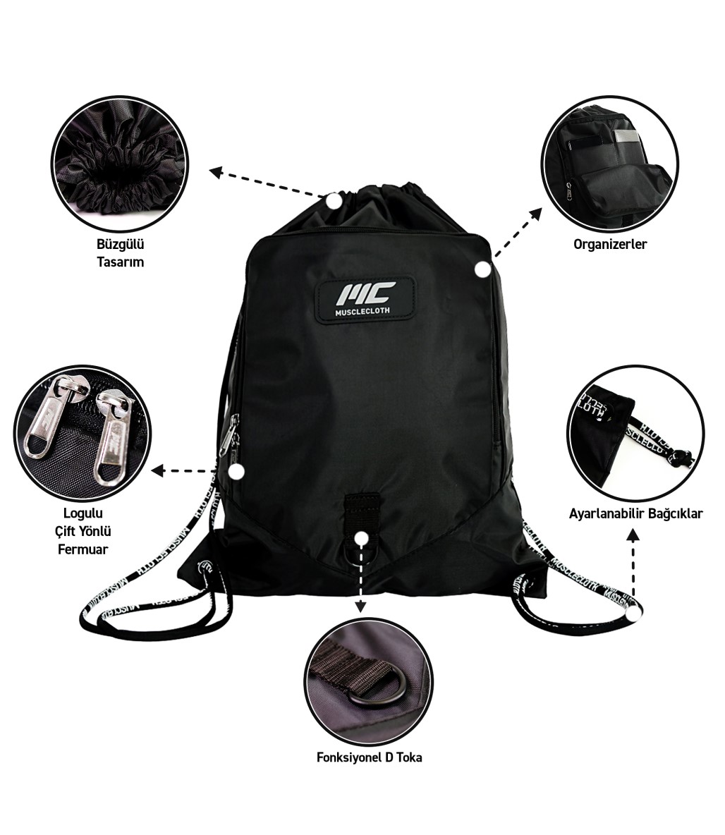 MuscleCloth Sackpack Spor Çanta Siyah Özellikleri: